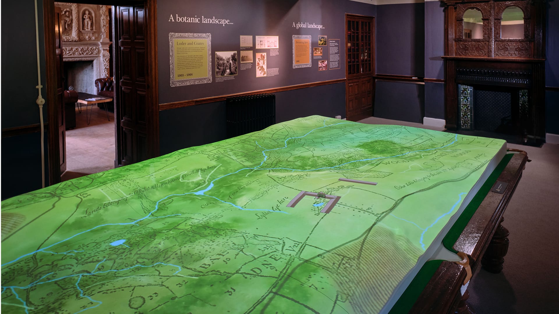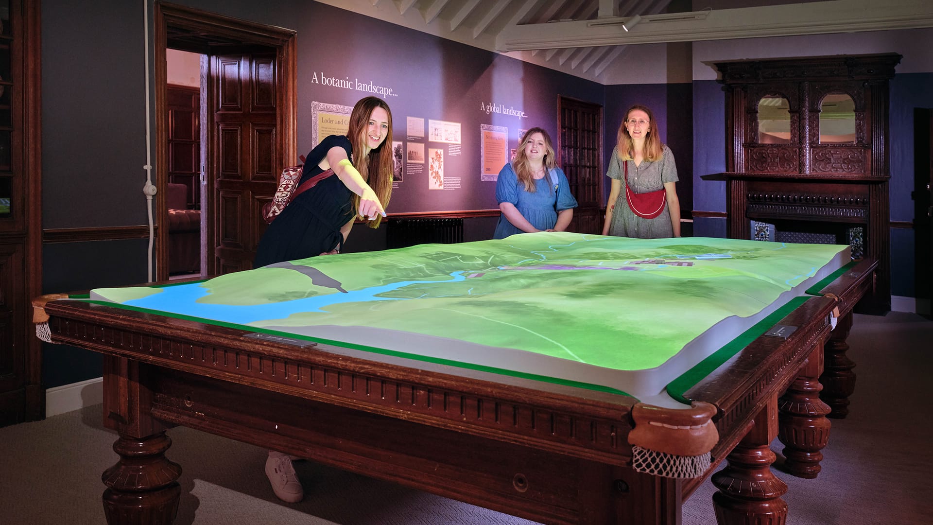In the Billiard Room, a projection mapped onto a bespoke 3D model embedded in a real billiard table explains why Wakehurst’s landscape is uniquely suited to global conservation science. The result is an immersive, elegant installation connecting pioneering research with place, history and climate resilience.